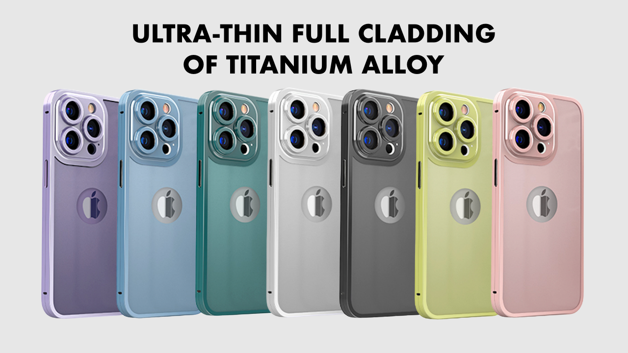 iPhone 13 & 14 Series 360 Degree Cover of Ultra Thin Metal Titanium Alloy Material with Camera Lens Protection. Easy to Apply, comes with Screen protector and back titanium alloy panel with 0.25mm thickness which is ultra thin.